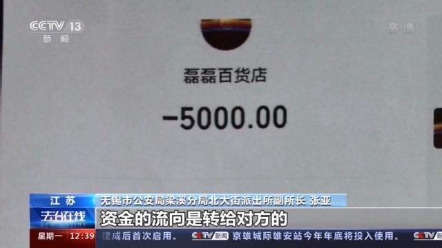 无锡市公安局梁溪分局北大街派出所副所长 张亚: 发现他这个发货人当时填写的手机号码是不存在的,也就是个空号。然后名字也是随便写写的那种,根本就没办法联系到这个发货人。资金的流向是转给对方的,转了5000块钱,然后对方把这个钱就是一层一层地又转出去了,最终是流到境外。